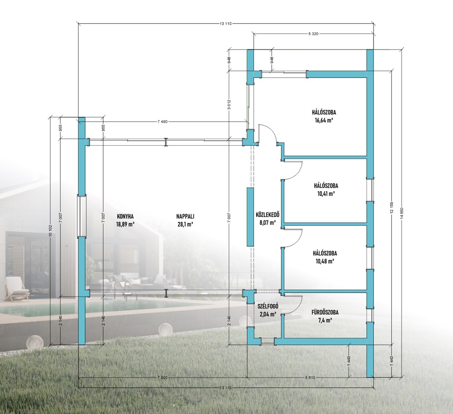 Bruttó alapterület: 158 nm.