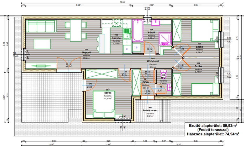 Bruttó alapterület: 90 nm.