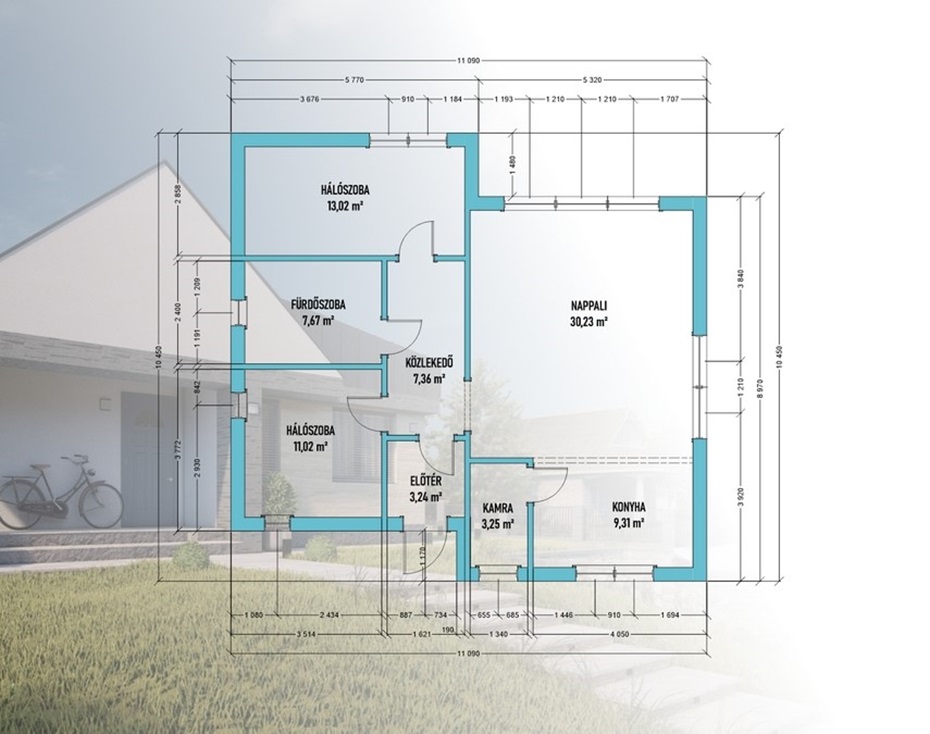 Bruttó alapterület: 102 nm.